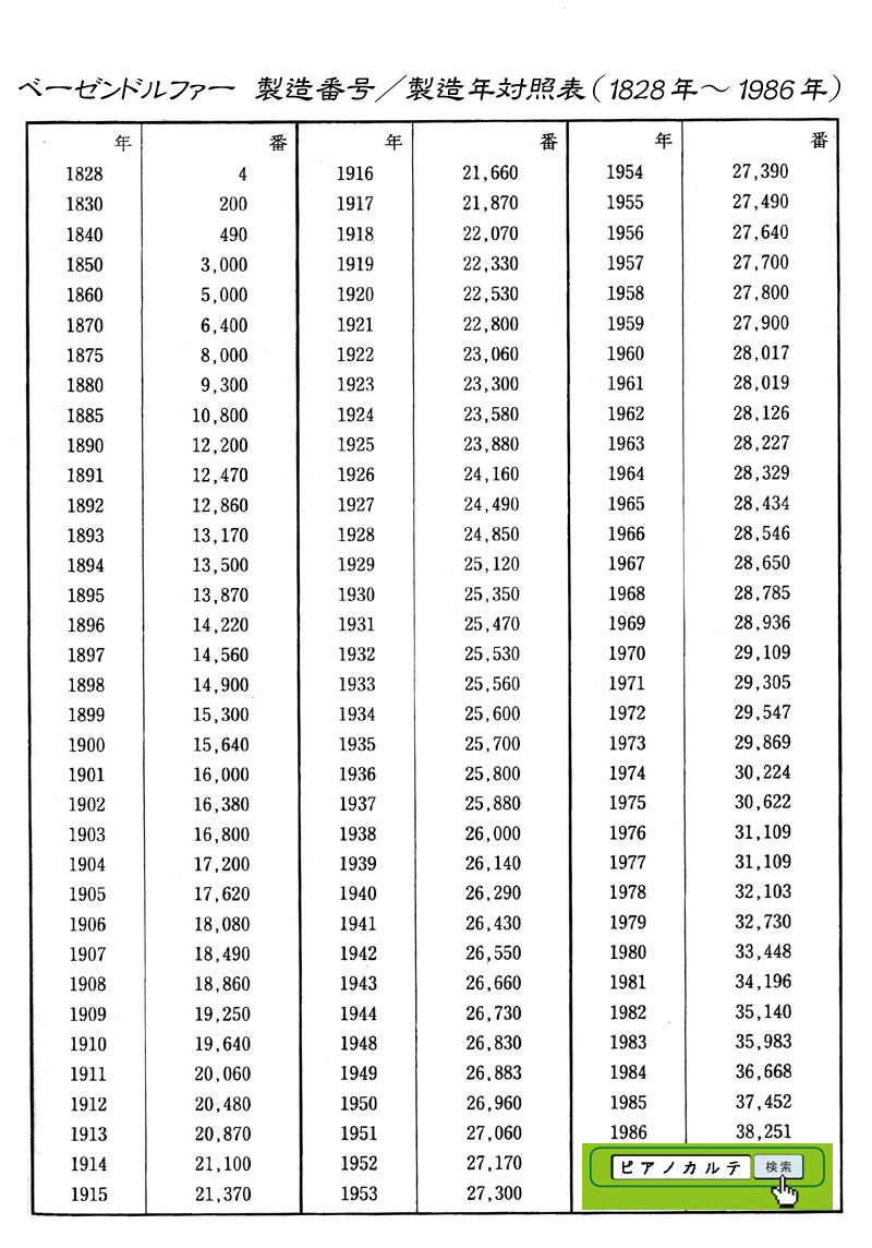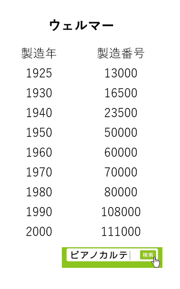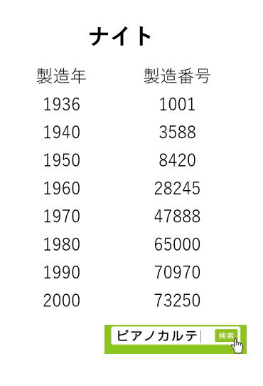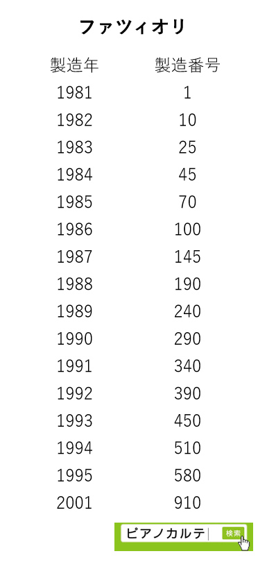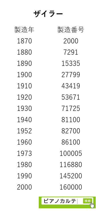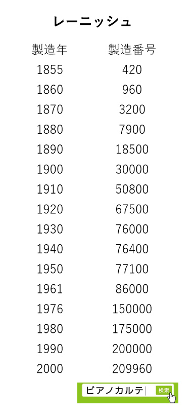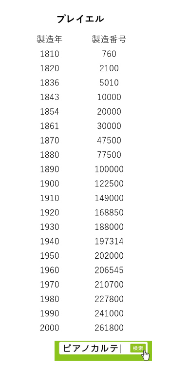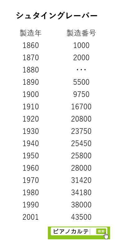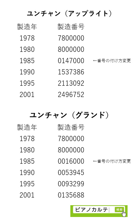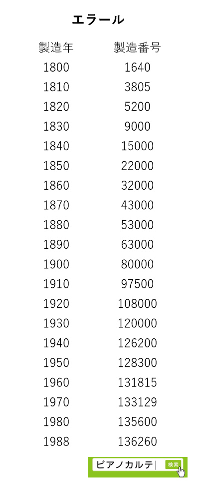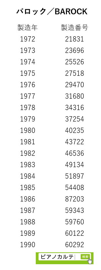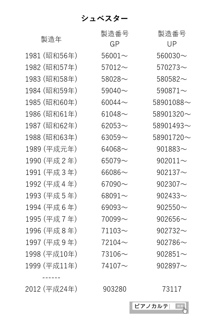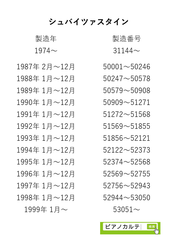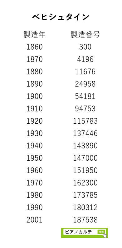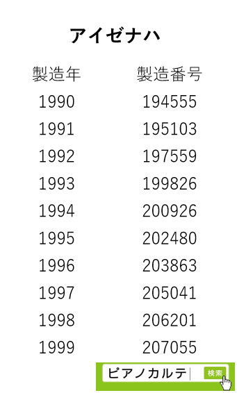 アイゼナハピアノ 製造番号/製造年代 対照表(1990年~1999年) →★