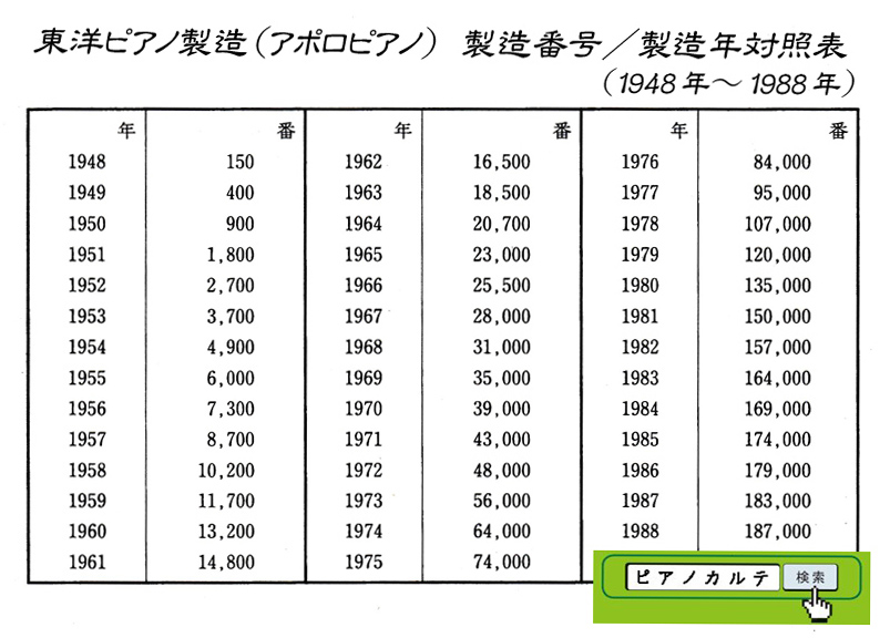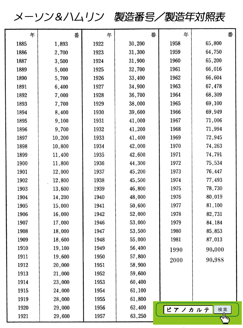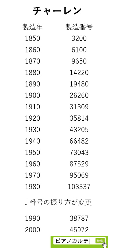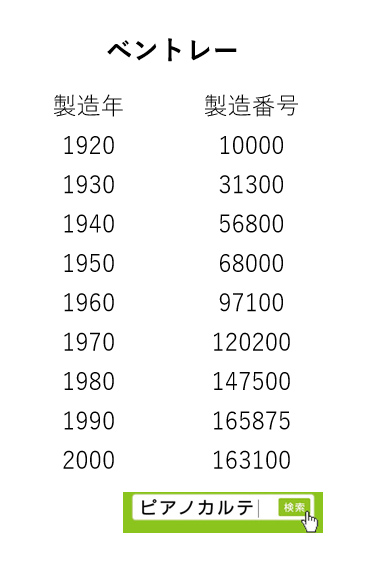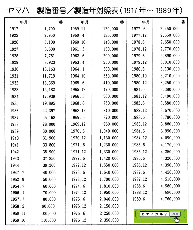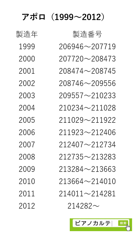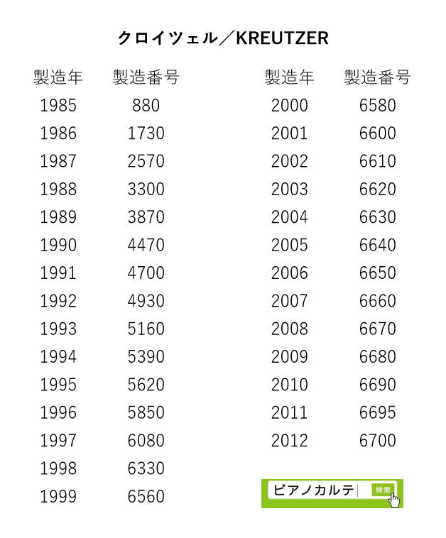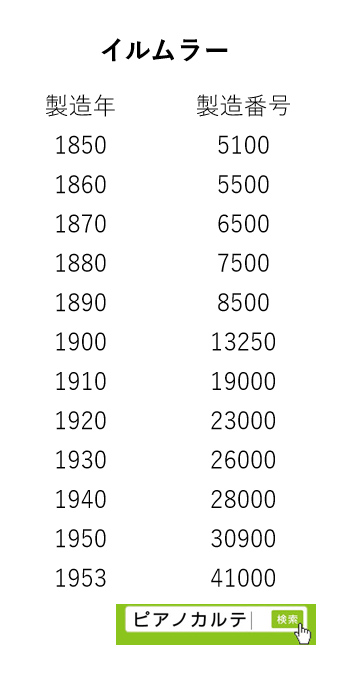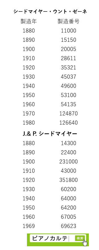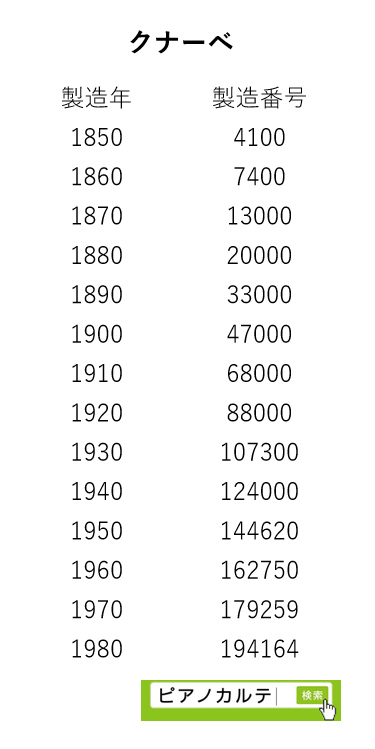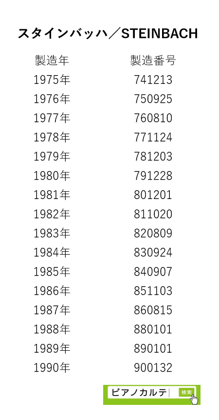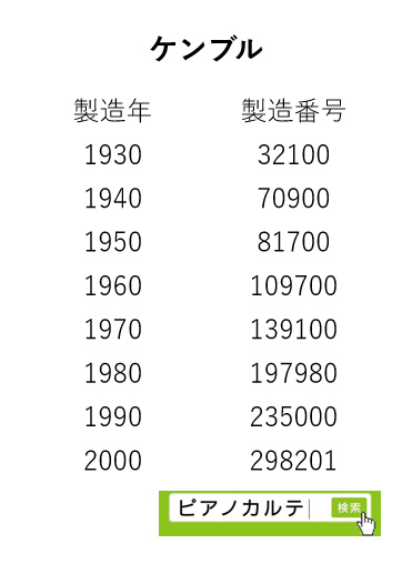 アイゼナハピアノ 製造番号/製造年代 対照表(1990年~1999年) →★