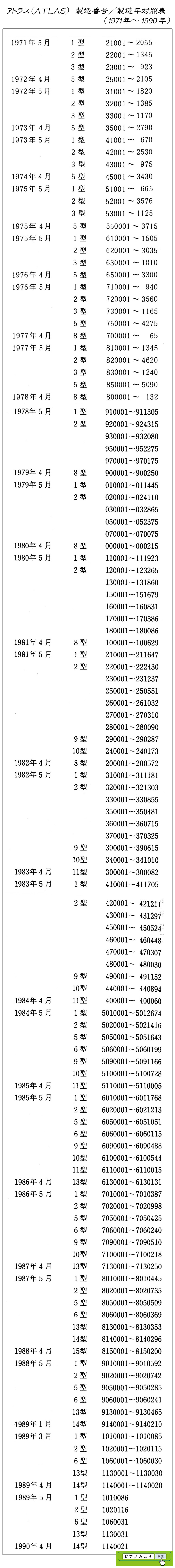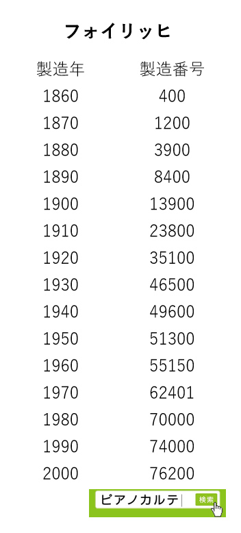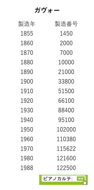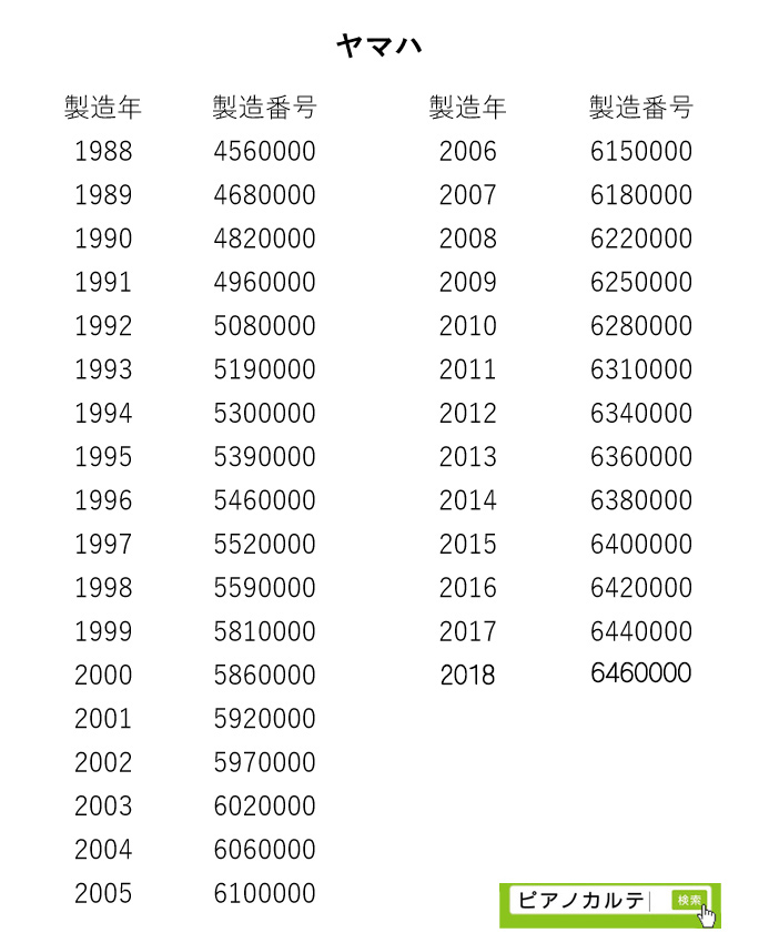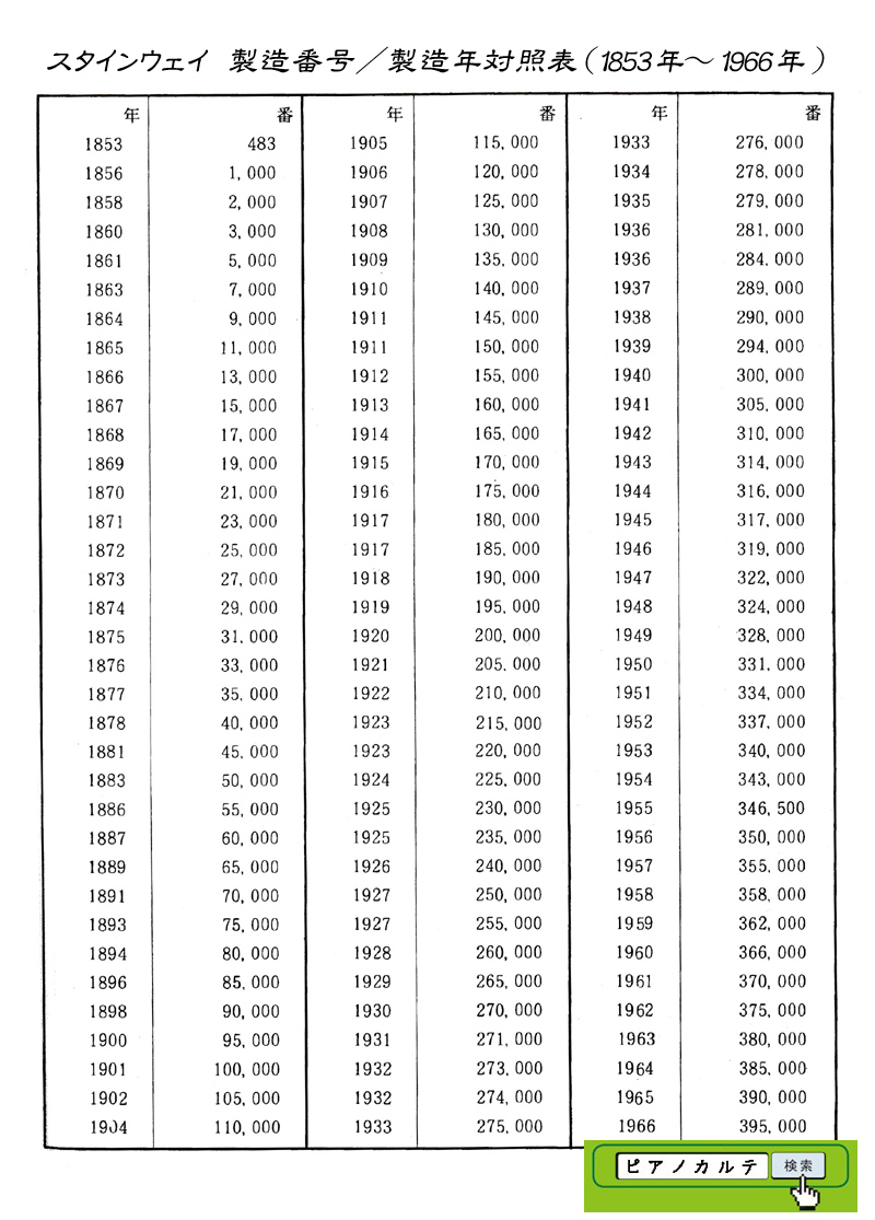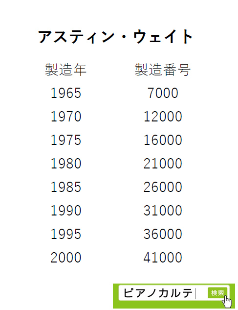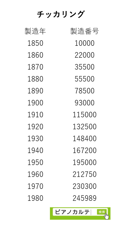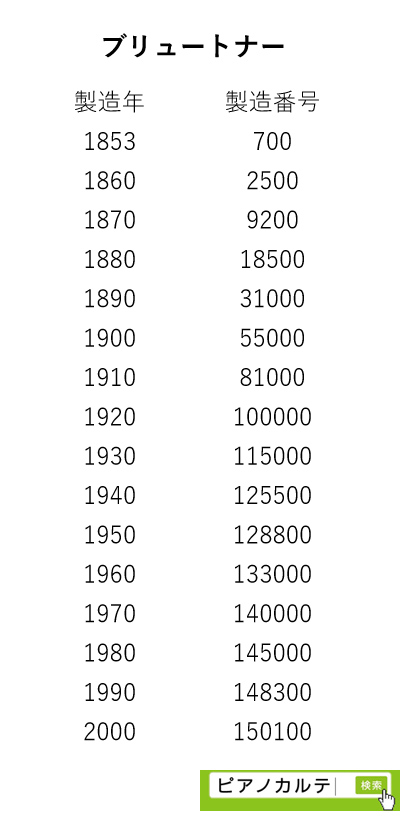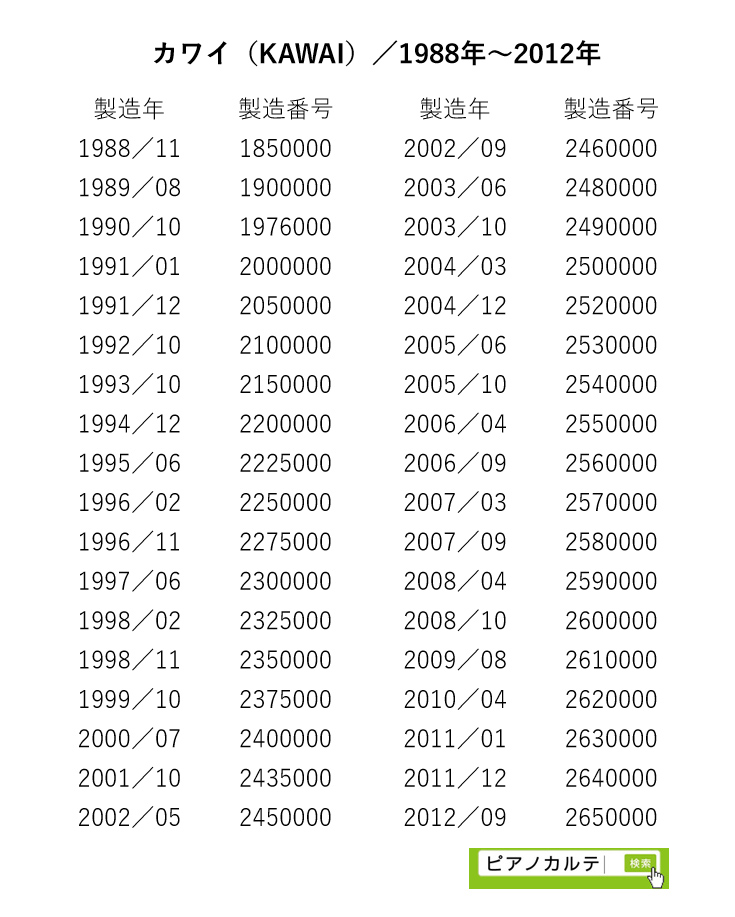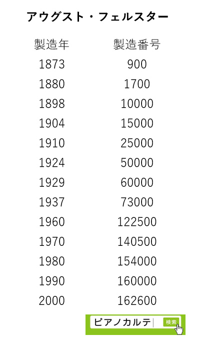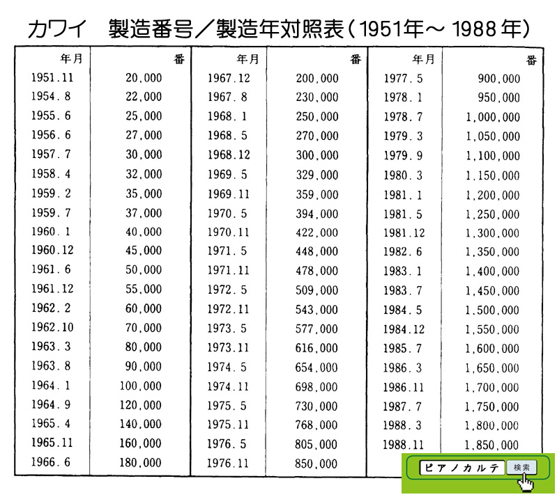 アイゼナハピアノ 製造番号/製造年代 対照表(1990年~1999年) →★