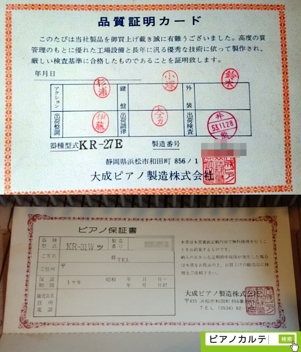 高級品にはエゾ松の響板、ドイツのレンナーハンマーを使用していました。
