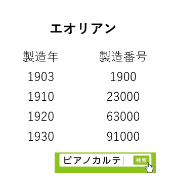 エオリアン 製造番号/製造年代 対照表(1903年~1930年) →★