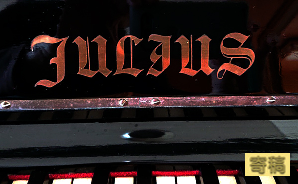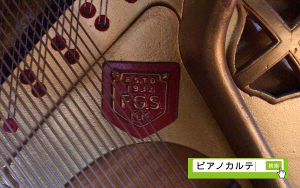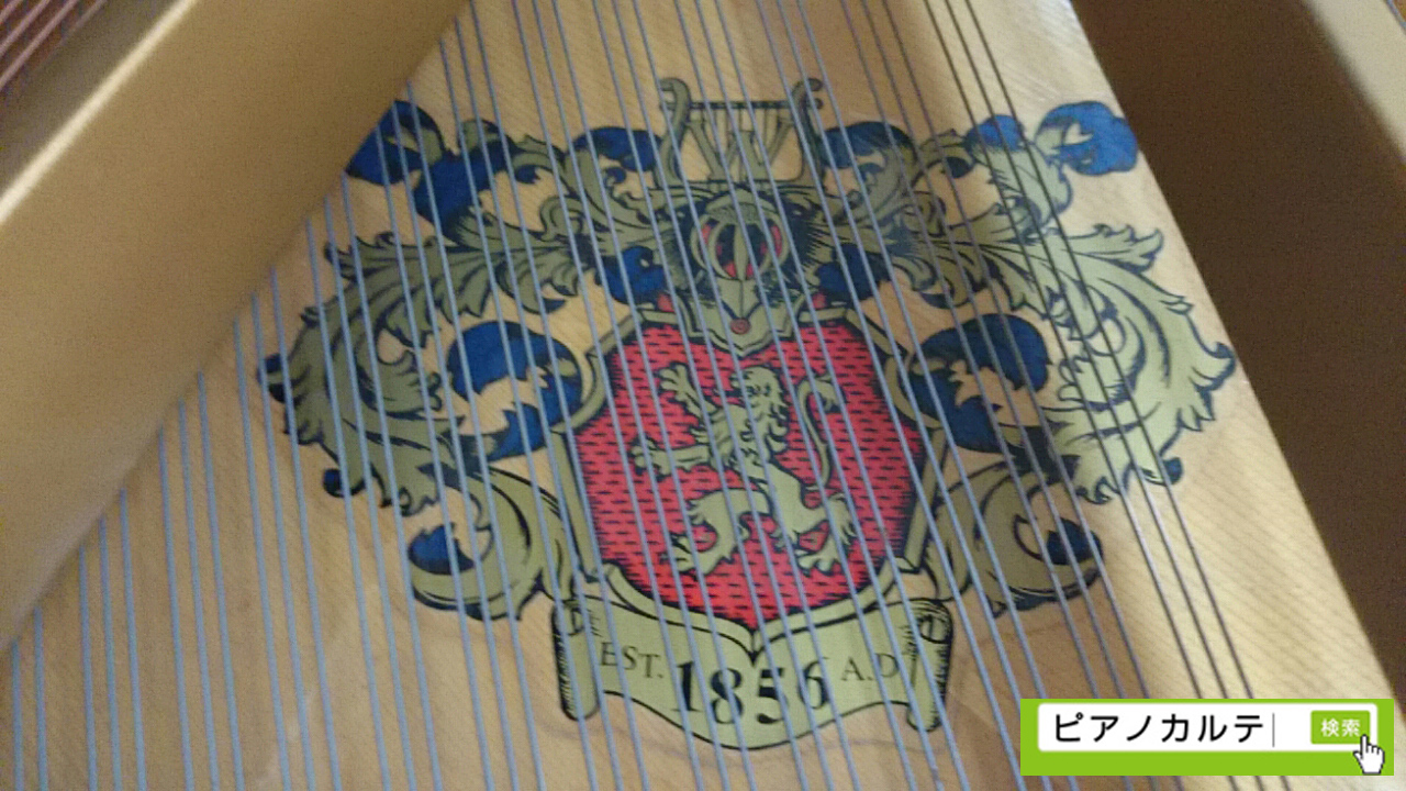数あるピアノのトレードマークの中では最も凝ったデザインだと感じます。