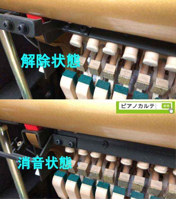 アメリカのピアノにこの方式が多く、ボールドウィンの3本ペダル機種もこの方式を採用しています。