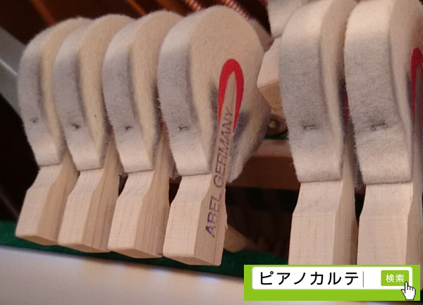 このピアノはハンマーベッドに硬化剤がたっぷり入っているため、